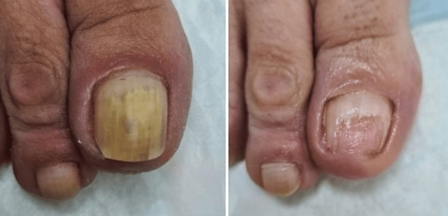 Sono stata accompagnata alla clinica da Professoressa Teresa Grieco. Il mio trattamento è durato circa sei mesi. Dato che anche il mio fegato ne era affetto, mi sono state somministrate delle medicinali e altri prodotti naturali ma le mie gambe sono state trattate con lo spray Fungo Killer. Un mese dopo, quando il mio fegato non era più in pericolo, ho usato solo lo spray. Ora condividere i risultati con voi perché sono molto felice di essere riuscito a sconfiggere il micosi del piede senza un intervento chirurgico.