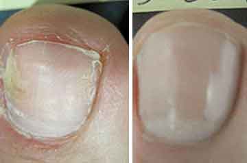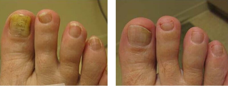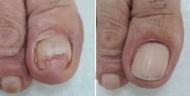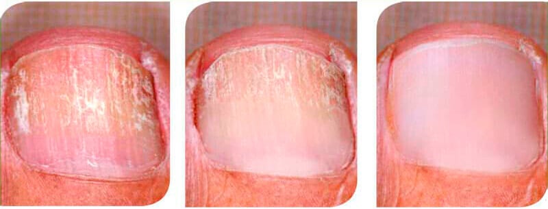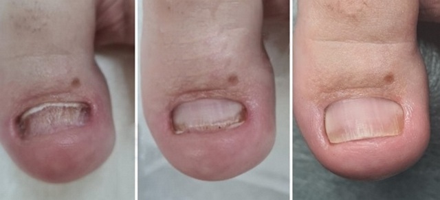 Ho usato questo spray 2 volte al giorno e ho fotografato per l'intero processo. Dopo 2 mesi, l'unghia aveva gia' un aspetto normale. Sono molto felice.