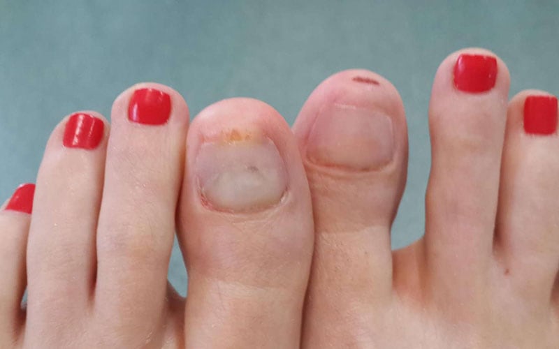 Una volta mi sono fatto male a un dito del piede colpendo l'angolo di una cassettiera. Mi ha fatto male, ma non me ne sono accorto. Il giorno dopo, l'unghie sembravano un po gonfi. Non ho prestato nemmeno attenzione: ho usato lo smalto gel e sono andato nei saloni di bellezza. Quando lo smalto è stato rimosso nel salone, ho trovato un'unghia fortemente colpita dal fungo. Non era una bella immagine.